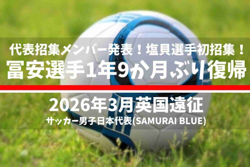 サッカー日本代表(SAMURAI BLUE)の3月の英国遠征と国際親善試合(International Friendly Match)・キリンワールドチャレンジ2026(KIRIN WORLD CHALLENGE 2026)の日程(スケジュール)は?対戦相手はどこ?招集メンバーは?