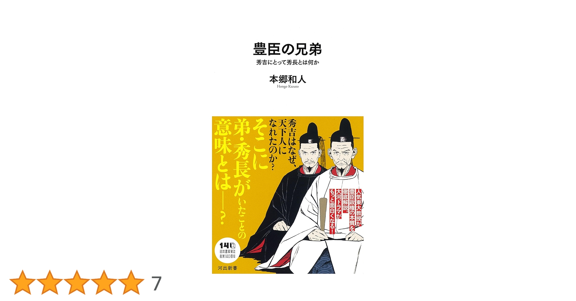 豊臣ブラザーズは永続して貴族になったファミリーの生まれではありませんでした。であるにもかかわらず、彼らは巧みに天下を獲りました。この国にあって、どのような生き方をすれば、いかなる性格を持ってすれば、このような出世の階段を駆け上がることが可能なのか。歴史家としては、この謎を解き明かして、世間の目にさらしたい衝動に駆られます。(本書「はじめに 歴史から得られるヒント」より)著者