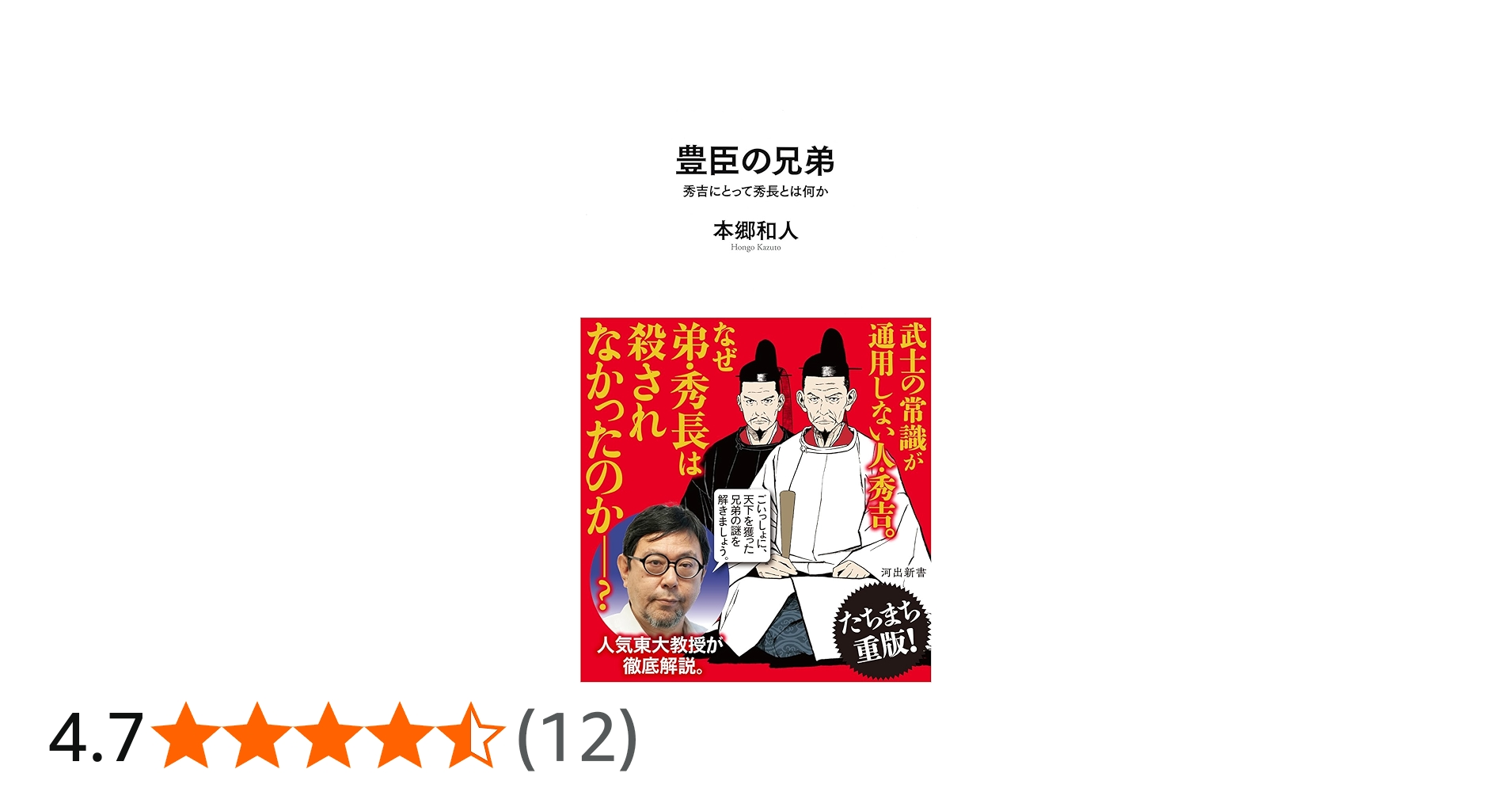 豊臣ブラザーズは永続して貴族になったファミリーの生まれではありませんでした。であるにもかかわらず、彼らは巧みに天下を獲りました。この国にあって、どのような生き方をすれば、いかなる性格を持ってすれば、このような出世の階段を駆け上がることが可能なのか。歴史家としては、この謎を解き明かして、世間の目にさらしたい衝動に駆られます。(本書「はじめに 歴史から得られるヒント」より)著者