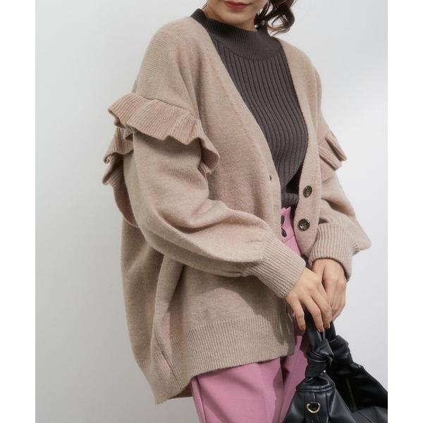 カーディガン 【WEB限定】袖フリルがアクセント。Vネックミドルゲージカーディガン