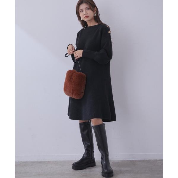 商品名(メーカー品番・商品番号などを含む):クラシカル肩釦ニットミニ丈ワンピース [BPE81280]