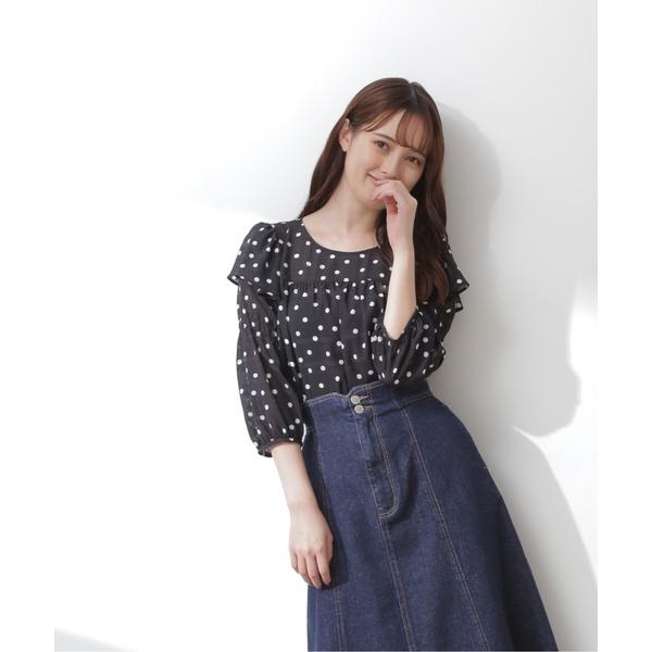 商品名(メーカー品番・商品番号などを含む):シャドーボーダードットプリントブラウス [1251210011]