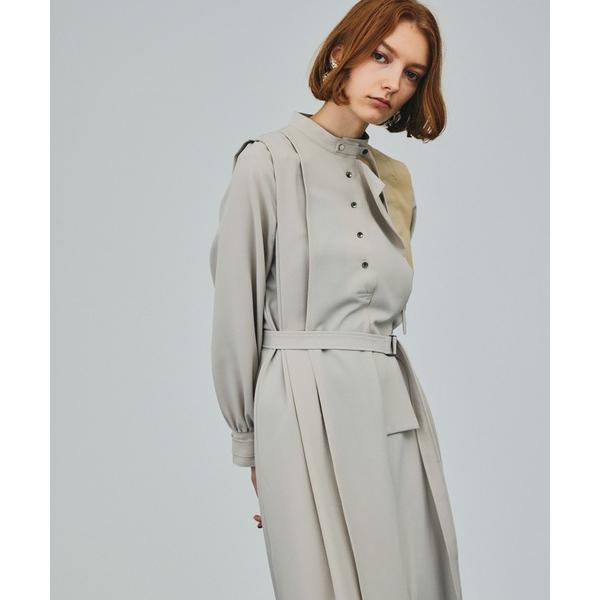 ワンピース シャツワンピース レザーライクミックスワンピース