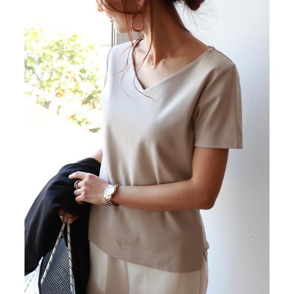 tシャツ Tシャツ コットンVネック半袖ダブルフロントTシャツ