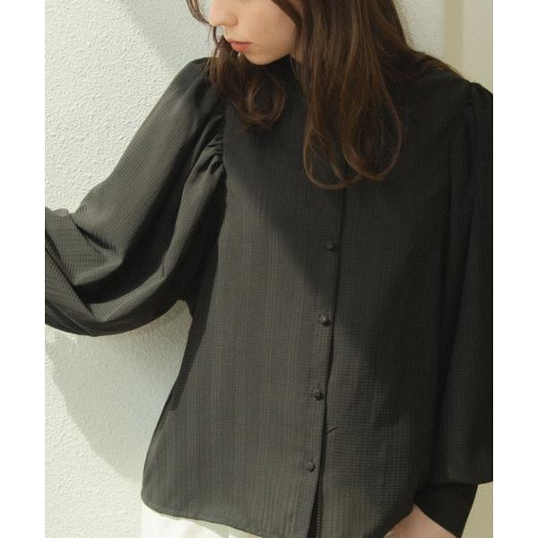 cute sheer volume blouse/シアーチェックボリューム袖ブラウス