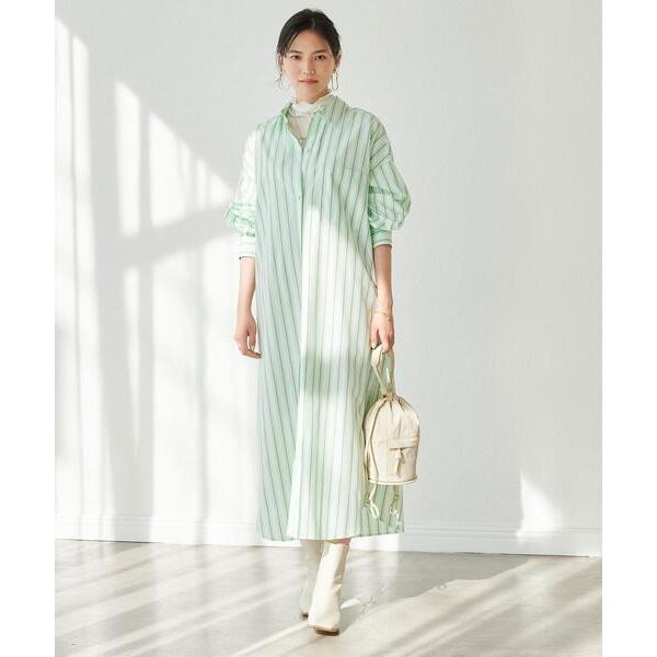 着用衣装 ① グリーンレーベル リラクシング 『タック スリーブ シャツ ワンピース ストライプ』