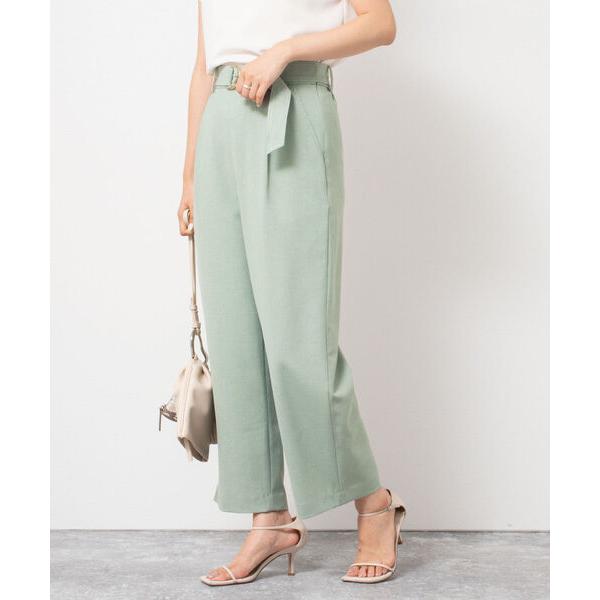 パンツ 麻調ベルト付きセミワイドパンツ