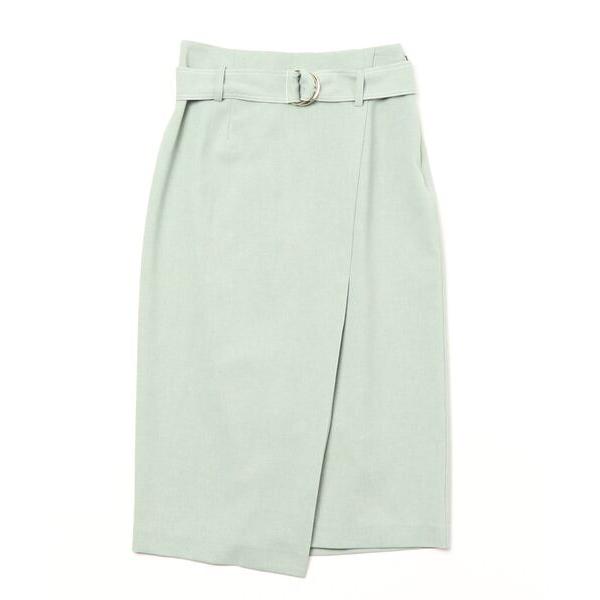 スカート 麻調ハイウエストラップ風タイトスカート