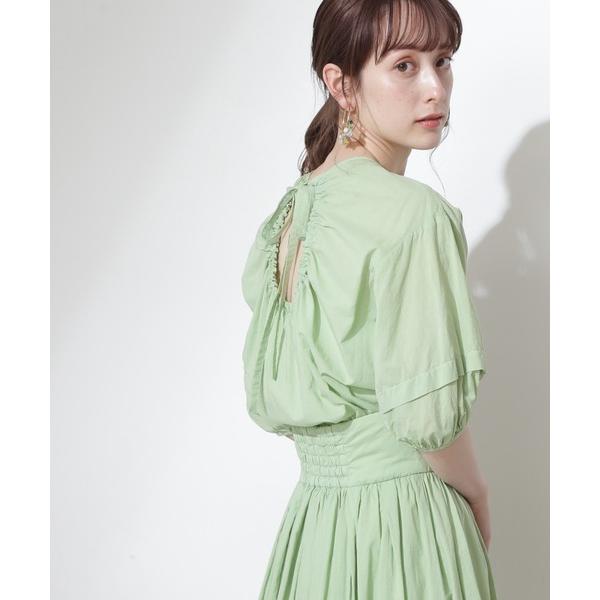 リボン付バックオープンデザインと幅広のウエストベルトがポイントね。