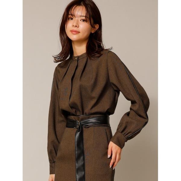 着用衣装 ① トーナル 『ツイードライクハイネックレザーパイピングブラウス』