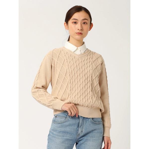 ■『ニューヨーカー|コンパクトギザコットン 14Gケーブル クルーネックニットカーディガン』
