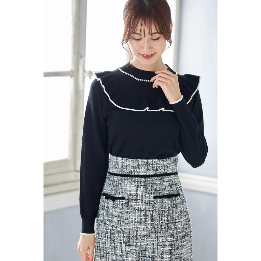 着用衣装 ① トッコクローゼット 『パール装飾フリル付き配色ライン入りプチハイネックニットプルオーバー【morses モーセス】』