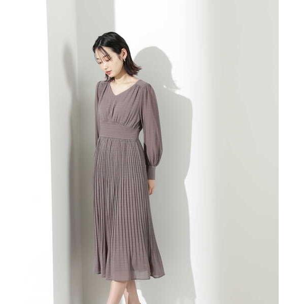 ■『ナチュラルビューティーベーシック|ウエストシャーリングプリーツワンピース』