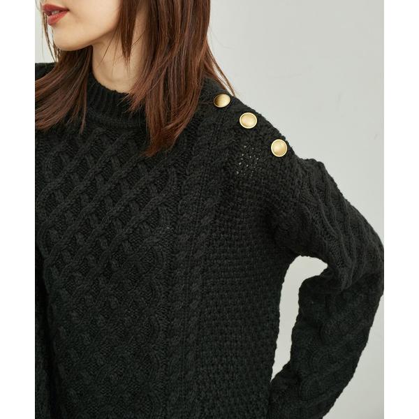 ■『ロペピクニック|バンドンニットゴールド釦ケーブルプルオーバー』