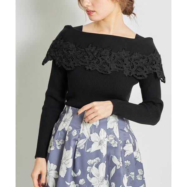■『トッコクローゼット|フラワーレース装飾オフショル風リブニットプルオーバー』