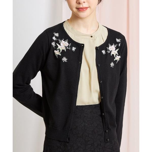 ■『トッコクローゼット|ビジュー付きフラワー刺繍入りラウンドネックカーディガン』