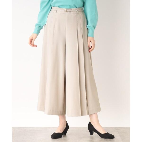 • 商品特徴:スカートのようなAラインシルエット、スカートパンツ、プリーツタック、共布ベルト、ゴールドの丸バックル