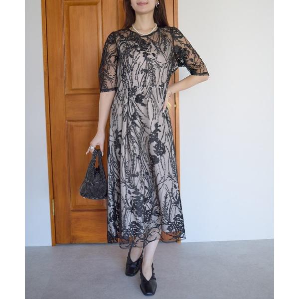 ■『プレフェリール|シアーレース バックリボン 結婚式 パーティー ドレス』