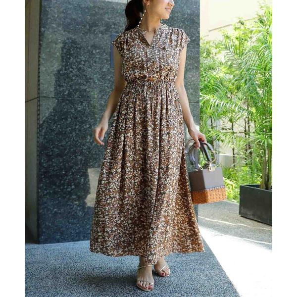■『ジネス|ジオメトリックフラワープリント ウエストギャザーワンピース』