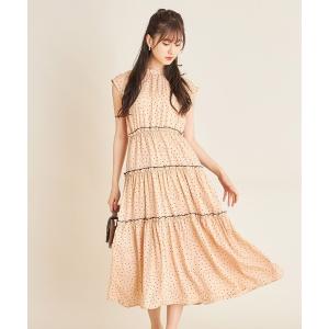 商品名:後ろりぼん付きドット配色ライン入りプチフリル装飾ティアードマキシワンピース 186148778