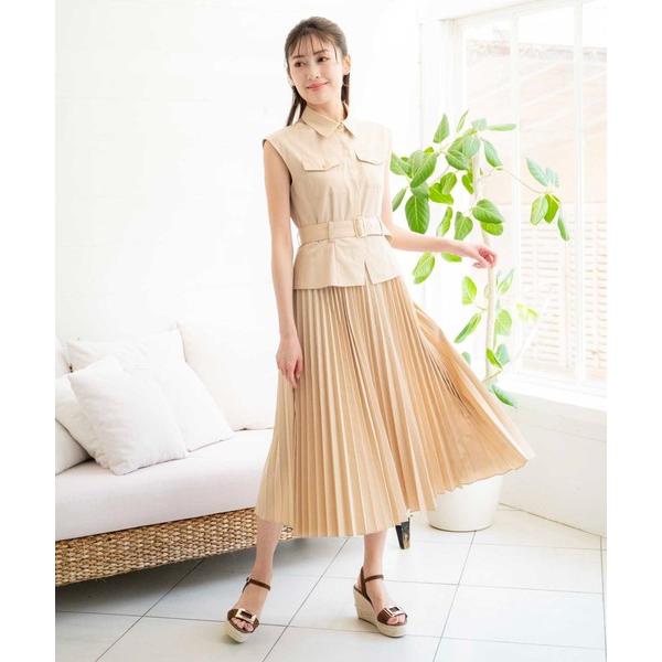 プリーツシャツワンピース