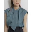ハンマーサテンラッフルタイノースリブラウス