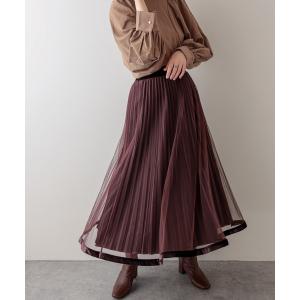 スカート 【WEB限定】裾ベロアパイピングチュールプリーツスカート