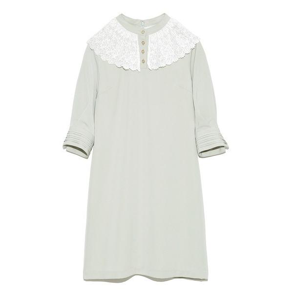 プリーツレースカラーワンピース