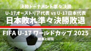 FIFA U-17 ワールドカップ カタール 2025 決勝トーナメント3回戦(準々決勝) U-17オーストリア代表 vs U-17日本代表の結果と総括